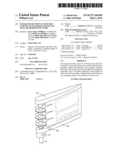 Patent Number: US 8717164 Grant Date: 2014-05-06 Filing Date: 2011-04-13